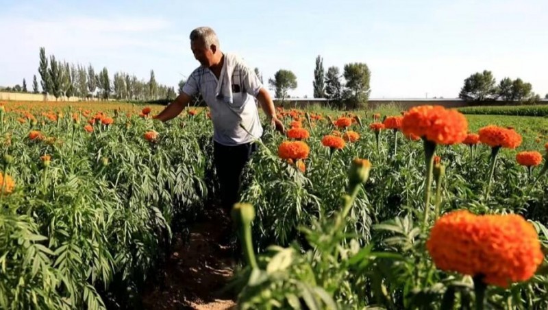 万寿菊,属一年生草本植物,花期长、种植技术简单,其花和叶入药有清热化痰、补血通经之功效,是一种提取纯天然黄色素的理想原料,天然黄色素广泛应用于食品、饲料、医药等领域。万寿菊具有清热解毒、缓解眼疲劳等功效,可以加工成药茶,此外因其提取物具有美白、抗皱、防紫外线等功效,还可以用于加工化妆品和防晒产品。广泛的用途带来大量的原料需求。