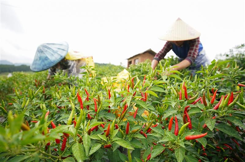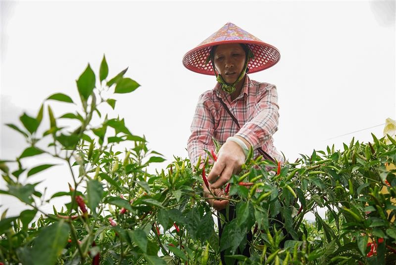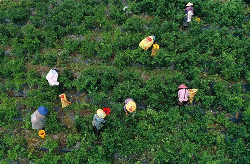 立秋时节,贵州省黔东南苗族侗族自治州丹寨县兴仁镇烧茶村的辣椒迎来丰收,村民们抢抓晴好天气采收,供应周边市场,田间地头到处一派繁忙。近年来,兴仁镇引导各村寨大力发展特色农业,通过党支部引领、合作社示范、群众务工的模式。实行规模化、标准化种植,带动群众实现增收。