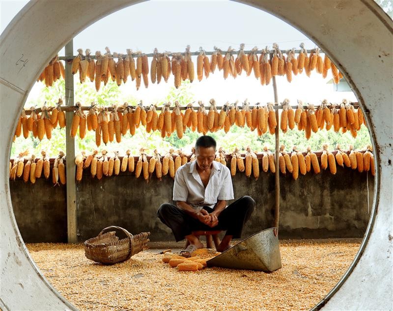 四川仁寿:玉米丰收 颗粒归仓 图为近日仁寿县文宫镇油村村8组村民王伟良正在整理玉米。 图为近日仁寿县文宫镇油村村8组村民王伟良正在剥玉米。 连日来,四川省眉山市仁寿县的52.8万亩玉米迎来收获季,到处是一派丰收喜人的景象。当地村民利用晴好天气抓紧抢收晾晒,确保颗粒归仓。图为近日仁寿县文宫镇油村村8组村民王伟良正在整理玉米。 来源:中国农网