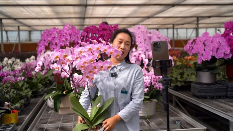 这个基地不仅注重品种的引进和培育,还十分注重科技的应用和创新,采用了先进的温室大棚技术,集成环境智能调控系统,涵盖温湿度精准控制、光照智能补足及循环通风等功能模块,使蝴蝶兰成活率提升至98%。这不仅大大提高了蝴蝶兰的成活率和品质,还让基地一年四季都保持鲜花盛开,满足了游客不同季节的赏花需求。同时,创新采用“云上展销”模式,通过电商直播拓宽销售渠道,日均发往全国各地的花卉达70余箱。