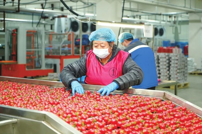 图②:华联农业发展(阳高)公司员工分拣“阳高红”西红柿。
