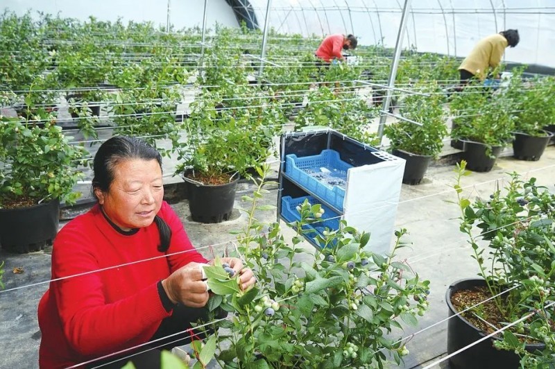 阳高县依托设施农业优势,通过智能温控大棚,精准调控温湿度,使蓝莓在严寒中依然茁壮生长,成功突破传统种植的纬度限制。这种种植模式让阳高蓝莓以“人无我有”的错峰上市优势抢占市场先机,自春节期间上市以来,蓝莓销售一路走俏。目前,沃林蓝莓产业园二期项目加速推进,园区已累计带动周边1000余名村民家门口就业,拓宽增收渠道。