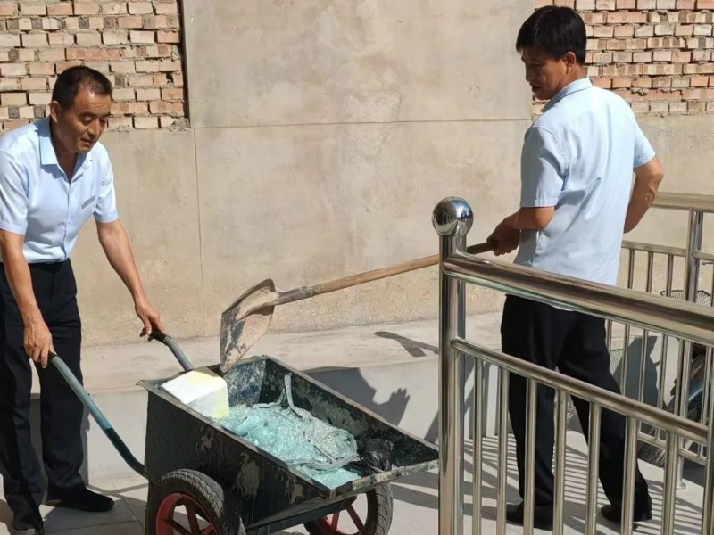 随后,光华支行抽调人手,立即对碎玻璃进行清理。时近正午,户外温度达40℃,稍微走动就会大汗淋漓、胸闷气短。但为了客户安全,几个人分工协作,有的拿铁锹铲、有的拿扫帚扫、有的用小推车推……在这个过程中,汗水浸透了工服,阳光把脸庞和胳膊晒得通红,但大家毫无怨言,埋头苦干,经过半个多小时的奋战,终于把碎玻璃清扫干净,安装上明亮崭新的玻璃门。