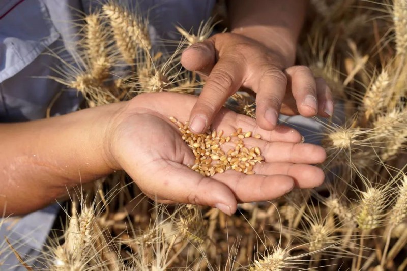 用粗糙的手掌托住麦穗