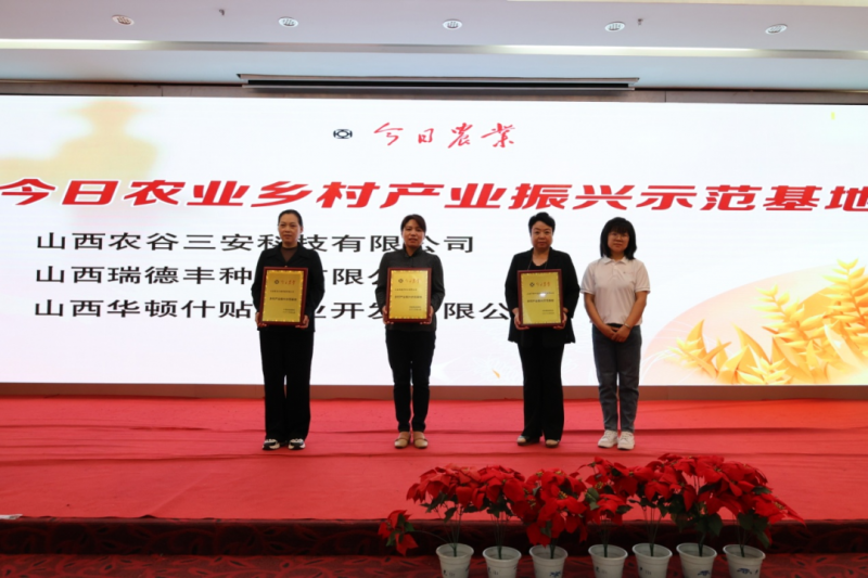 会上,晋中市太谷区水秀乡武家堡村、太原市小店区北格镇西蒲村、忻州市岢岚县宋家沟镇宋家沟村、吕梁市临县安业乡前青塘村被授予“今日农业乡村产业振兴示范村”荣誉称号;山西农谷三安科技有限公司、山西瑞德丰种业有限公司、山西华顿什贴农业开发有限公司被授予“今日农业乡村产业振兴示范基地”荣誉称号;山西普森特朗科技有限公司的“沃小贝”贝贝南瓜,太原市娄烦县双井村娄烦土豆,山西青塘食品有限公司青塘月饼,山西农谷三安科技有限公司三安有机艾等13个农产品被授予“今日农业特优农产品”称号。活动现场还布置了特优农产品展区,集中展示藜麦月饼、独一村酥馍馍等特优农产品,特优农产品的展出,不仅体现着丰收的喜悦,更感受到农民勤劳致富的渴望。