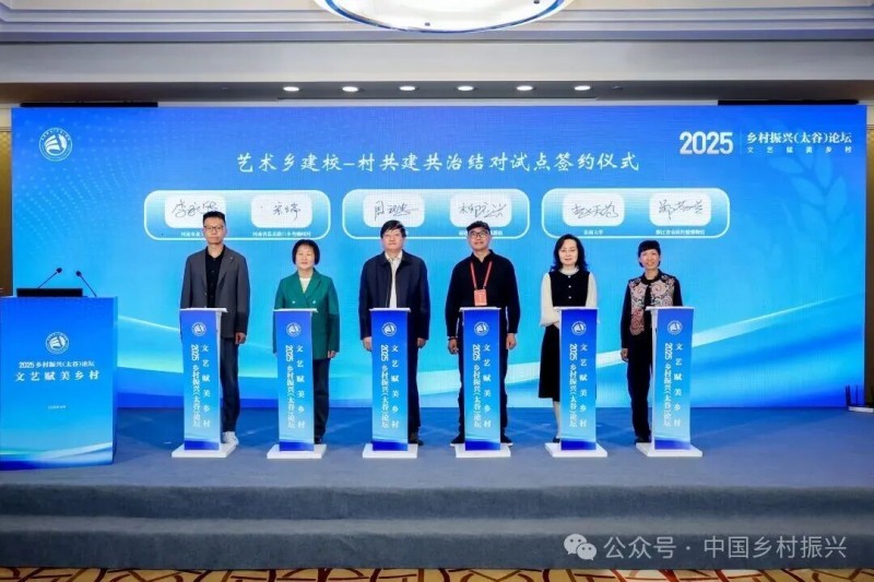 论坛还发布“艺术乡建校—村共建共治试点名单”,涵盖全国百校百村实践点,如中央美术学院与浙江余村、南京艺术学院与江苏无锡桃源村等组合,将围绕“美育下沉、文创开发、空间改造”合作,打造校地协同“试验田”。随后,12对高校—乡村代表分四组签约,明确高校需派驻团队、提供支持,乡村需提供场地、组织参与,标志着校地协同从意向转向实质行动。