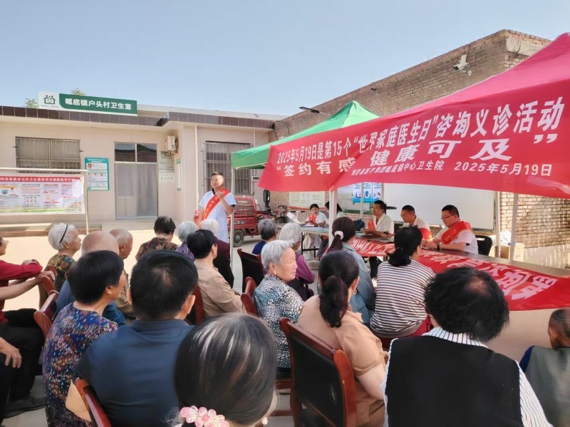 5月19日上午,闻喜县畖底镇卫生院在辖区户头村卫生室前广场设立咨询义诊点,县、乡、村三级家庭医生与相关工作人员一起参加活动。