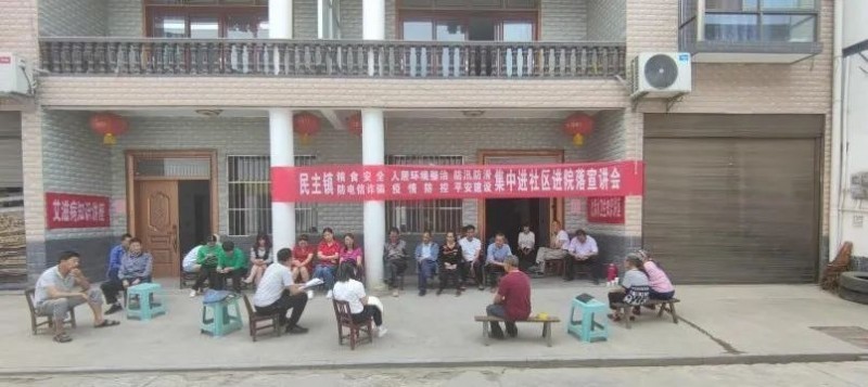 在民主镇国庆村,十几个人围坐在院坝积极讨论。“我推荐高书存,他不止把自己家打扫得干干净净,周边环境也主动清理打扫,‘文明家庭流’流动红旗应该颁给他。”国庆村村民胡世彪提议道。“没意见。”“我没意见。”村民纷纷回应。“下一个事情,四组公路排水道堵了,明天组织志愿者去清理,自带铲子锄头,参加的每人道德银行计5分。”国庆村村支书杨祖望话音刚落,村民踊跃报名,“我参加!”“算我一个!”截至2023年7月,类似的院落会民主镇各村(社区)开展上百场。针对农户多、居住分散的问题,民主镇大力推广群众院落会工作模式,通过民主议事评优树模表彰先进、组织开展志愿服务活动、和村民商讨文明操办红白喜事、对“道德银行+爱心超市”积分评定,让小小院坝成为孕育文明新风的沃土。