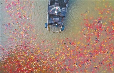 核心提示:在金溪县陆坊乡植源村锦鲤产业基地,饲养员正喂食锦鲤。去年以来,陆坊乡以党建为引领,采取乡办公司+村办公司+致富能人模式,