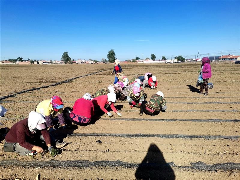 当地村民李艳华与其她工人们在这里忙着扦插甜叶菊苗。李艳华介绍,她家里有小孩,不能出门打工,家里地也少,在这里育甜叶菊苗,一天150元,一年能干四个月左右的活儿,收入近万元,还能学会一项技能,不比在外打工差。而且在家门口,打工顾家两不误。
