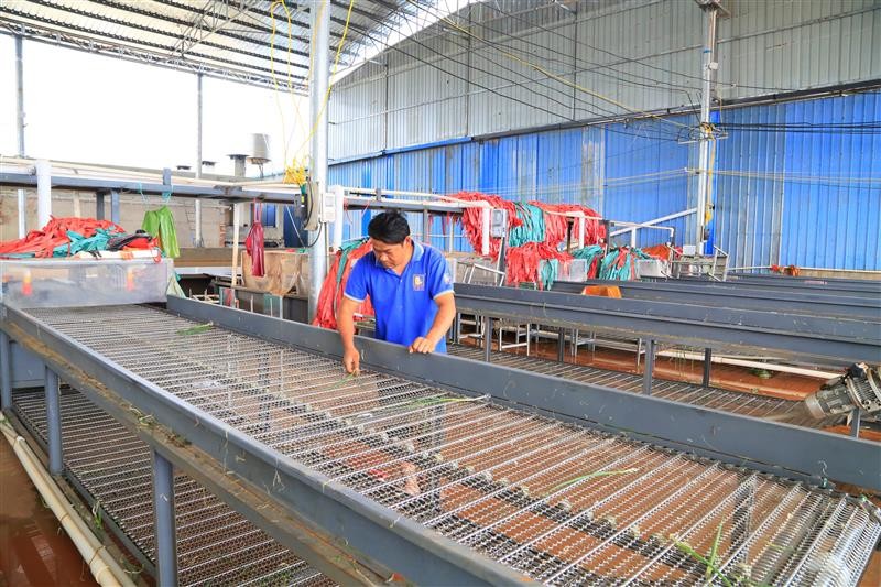 韩春明清理小香葱清洗线。邓楚瑜 摄