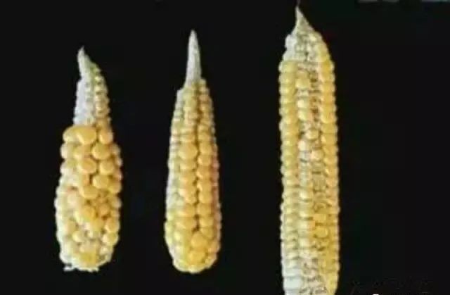 图9,缺钾导致绿色器官制造并传输到玉米穗的有机营养少,造成秃尖