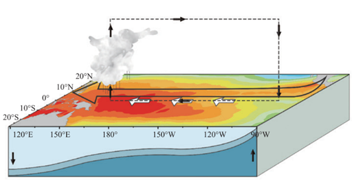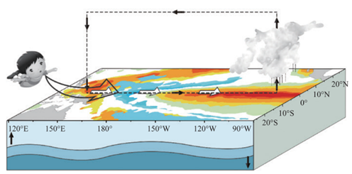 正常情况下,赤道西太平洋是大片的暖水区,而东太平洋是一片冷水区。但在一些年份,这些情况会发生变化。